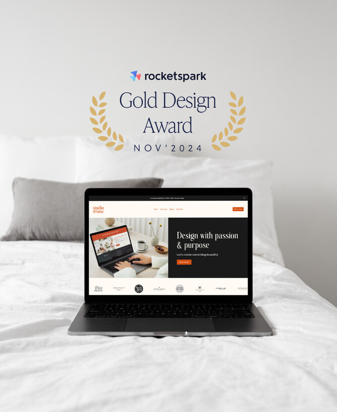 "Huge congratulations to Paige from Studio 90Nine for winning a Gold Rocketspark Design Award for November with her beautifully crafted design business website!